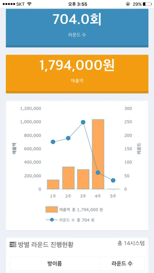 POS를 통해 이루어지는 매출 정보와 라운드 수를 확인하실 수 있습니다..