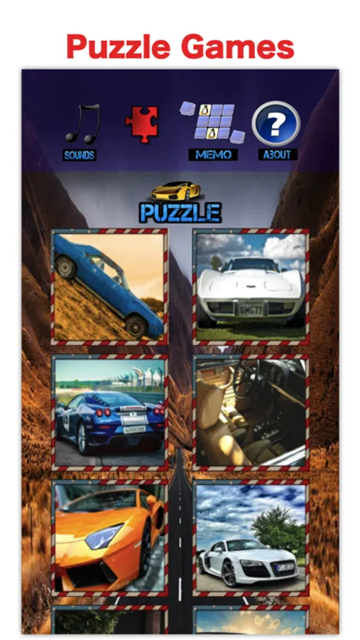 - 10 Real, high quality puzzles for 3 difficulty level with extreme sport cars, classic cars and muscle car