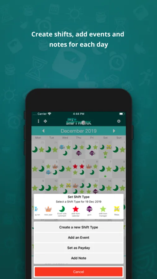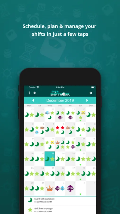 myShiftWork (My Shift Work) is a useful and simple calendar for shift workers. You can use it as a shift planner, shift scheduler or a shift calendar. View your rotations one month at a time in a clear, colour-coded format, with icons for each date, then easily navigate to future dates to check your schedule as far into the future as you need. It is suitable for any repeating pattern and will prove useful to shift workers. You can organize all your shift patterns and can see at a glance what shift or roster you are on what day.