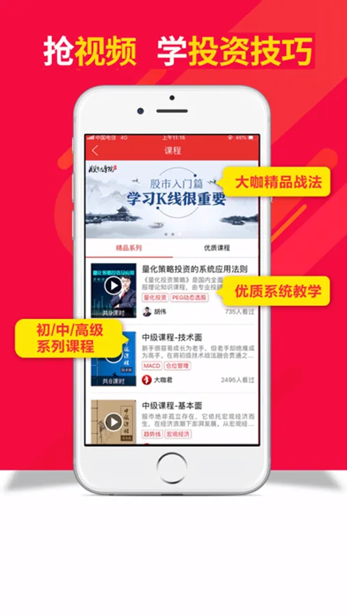 精品课程——投顾大咖授课,立足基本面、技术面、资金面的研究,帮助投资者掌握正确的操作技巧!