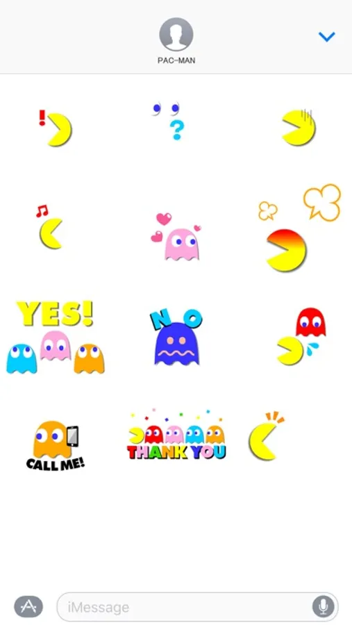 To use the stickers at the end of the set (the 12th), please be sure to place them in the right corner of your message bubble. PAC-MAN will make mischief with your message bubble.