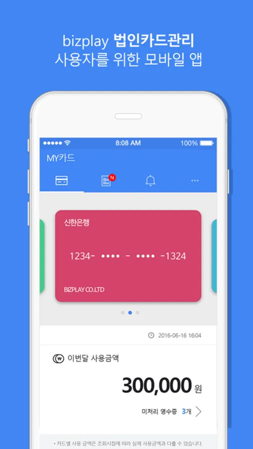 *이 앱은 bizplay “법인카드관리”를 이용하는 경비 사용자에게 제공되는 모바일 앱입니다.* (www.bizplay.co.kr)