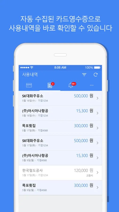 종이영수증을 더 이상 모으지 말고, 자동 수집된 법인카드 영수증으로 간편하게 경비처리를 하세요