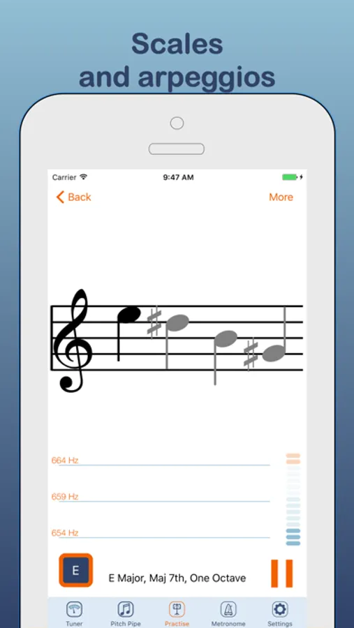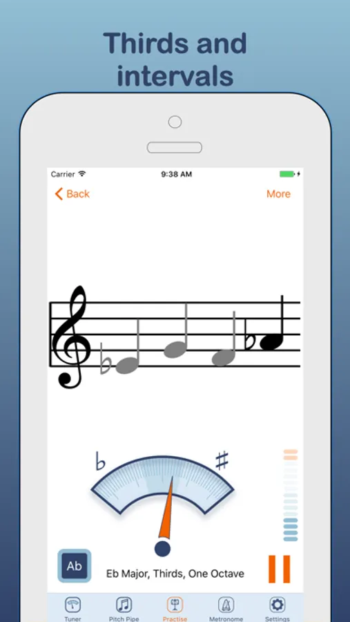* You can also listen to your selected scale, thirds, intervals or arpeggio - great for training your ear. Just long press the play button!