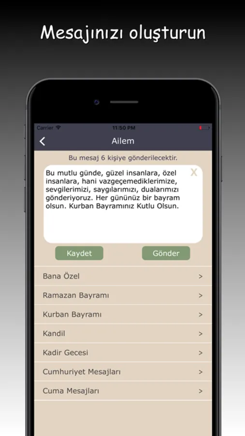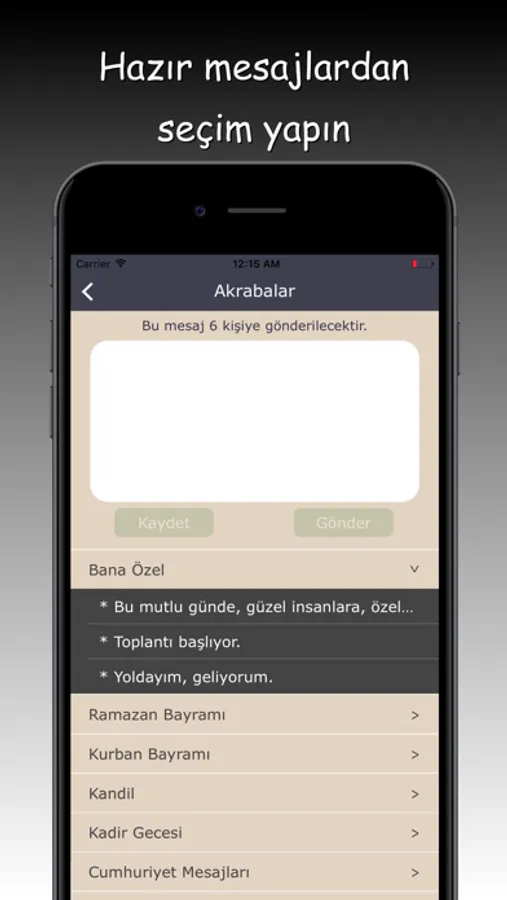 * Basit ve hızlı ekranları sayesinde; özel günlerde yada duyuru yapmak istediğinizde; göndermek istediğiniz mesajı yada uygulama içeriğinde kayıtlı hazır mesajlardan birini seçerek, istediğiniz gruba toplu olarak gönderebilirsiniz.