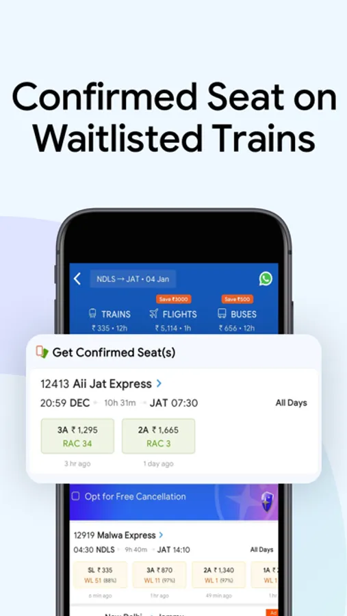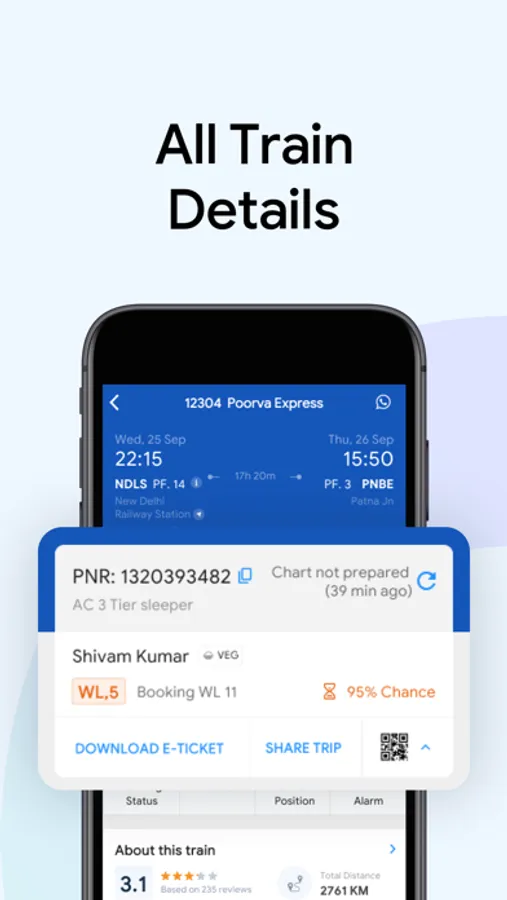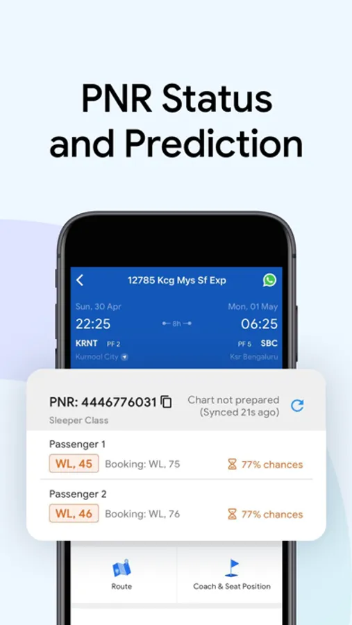 ● Get PNR predictions with superior accuracy. Know the chances of ticket confirmation, before and after your booking