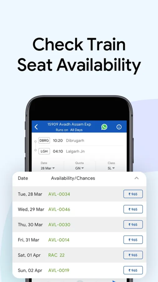 ● Search for train seat availability by simply typing the name of the stations, cities or towns