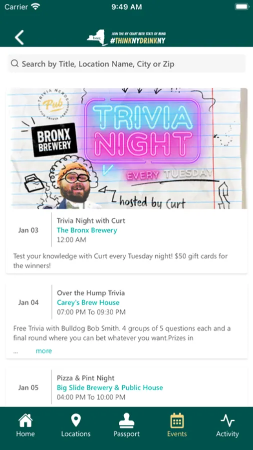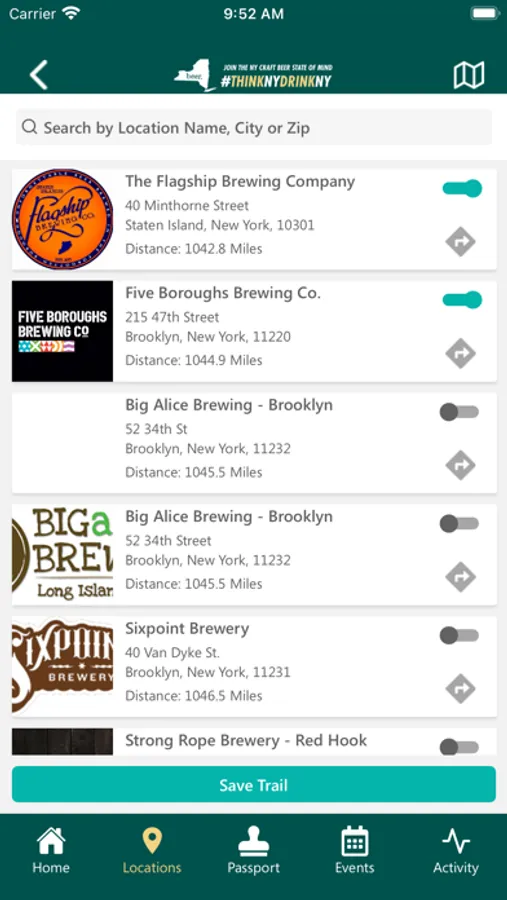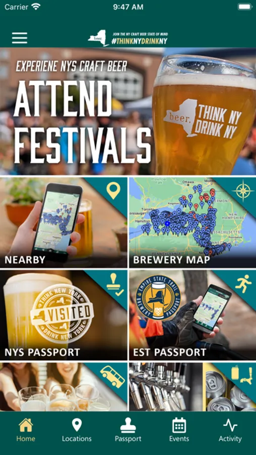 Find breweries near you with the click of a button! The free app offers a map of every brewery in the state plus 2 virtual passport programs, the NYS Brewery Passport & the Empire State Trail Brewery Passport. Collect virtual stamps from each brewery you visit and earn awesome Think New York, Drink New York ® beer gear!