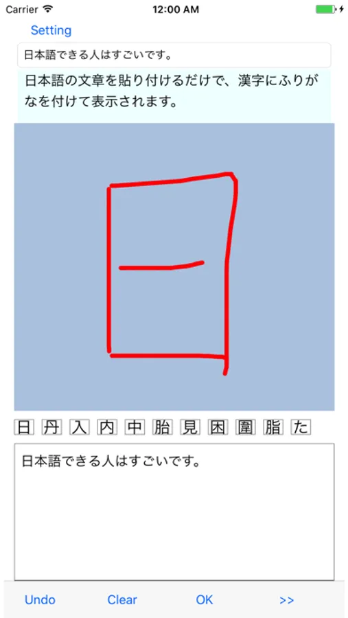 手書き入力機能を追加しました。手書きで漢字を入力し、ふりがなを付けて表示します。