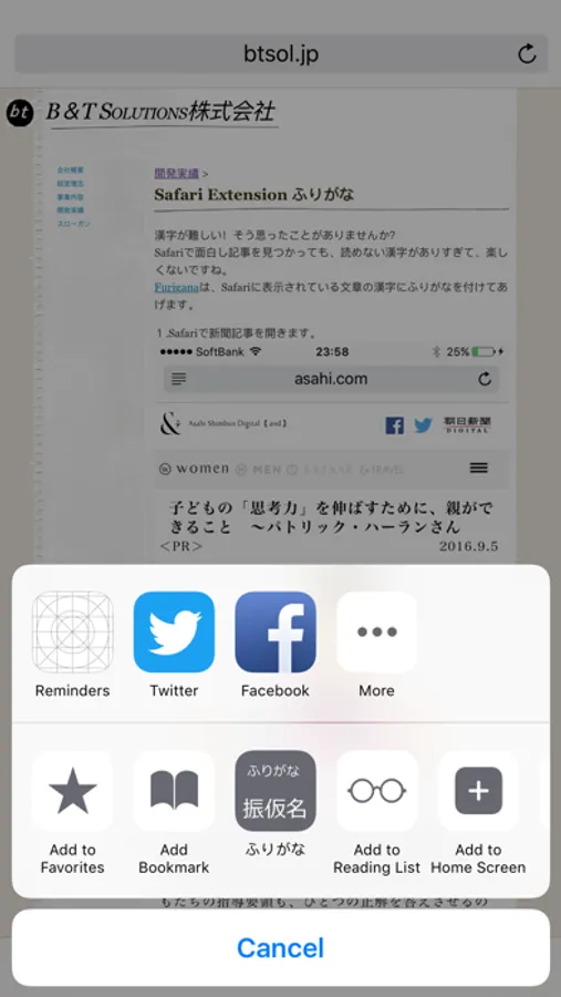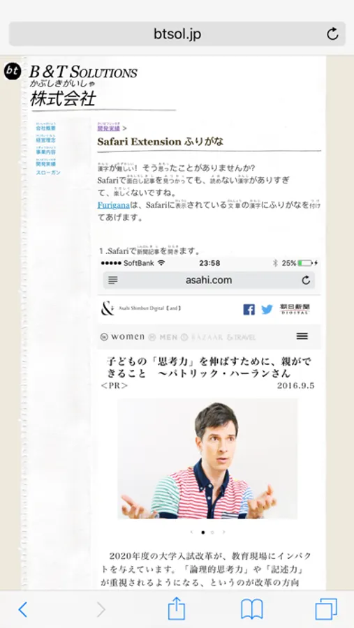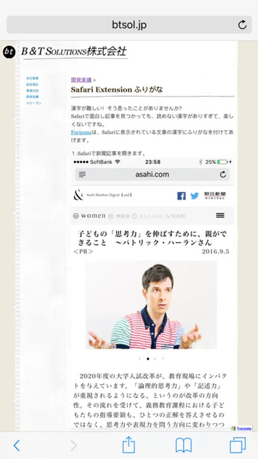 日本語を読めない人に、Safariにて表示された記事にふりがなを付けてあげる。