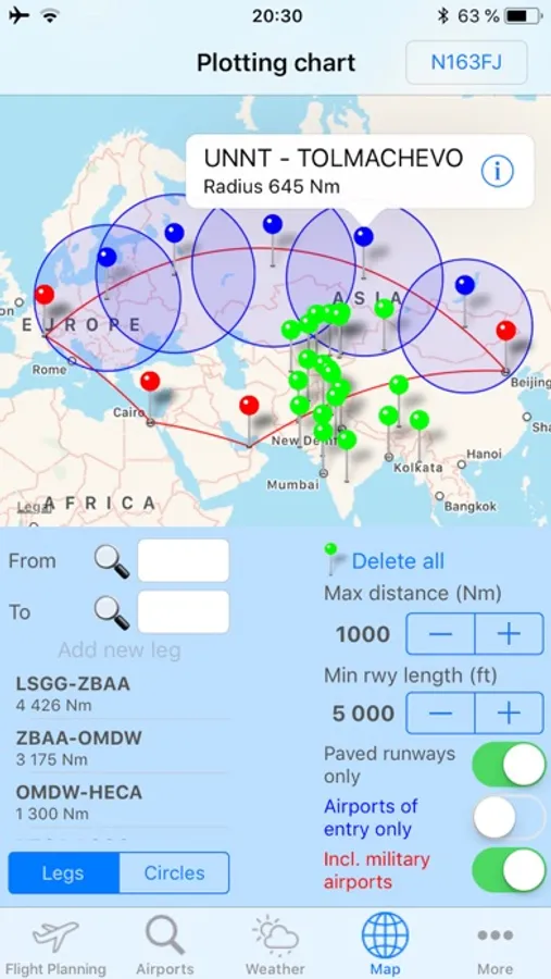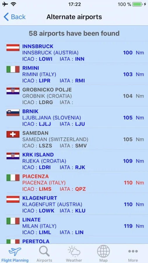 - By a long push on the map you can display all airports around, making easy and fast the selection of ETP airports. As for alternates search, this selection is based on same parameters (distance, runway length, paved runways or not, airports of entry or not, including military airports or not)