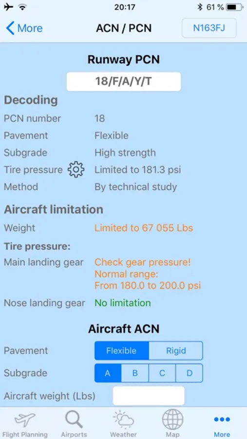 Based on a PCN number, Flight Ops will decode and display a full description.