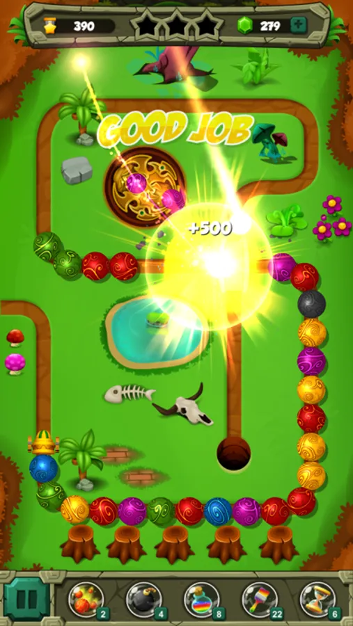 4. Achieve Chains by clearing marbles continuously using shooting.