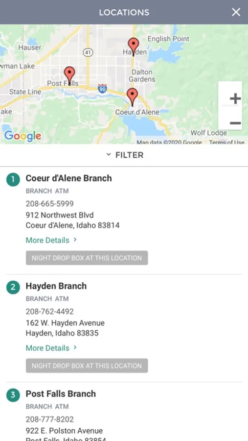 • View ATMs and branch location information
