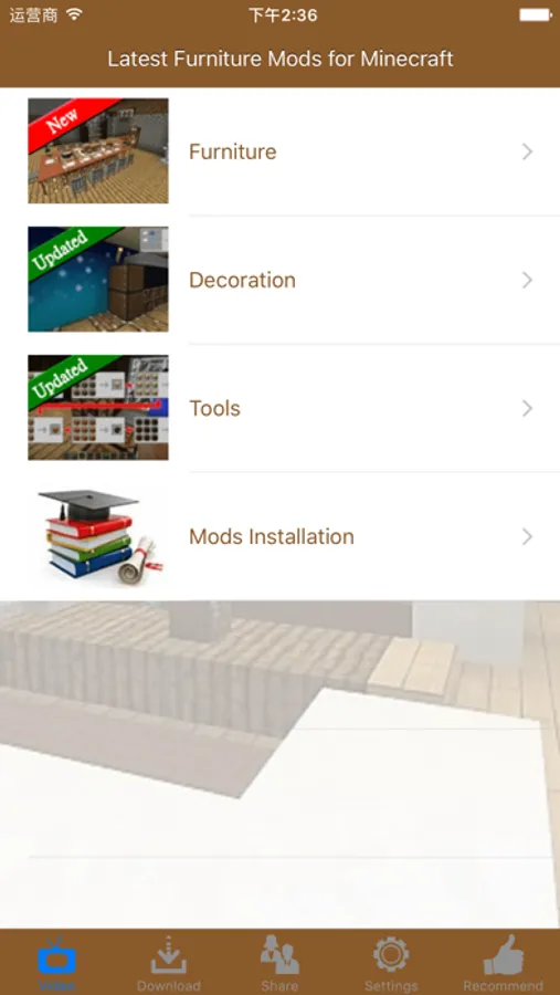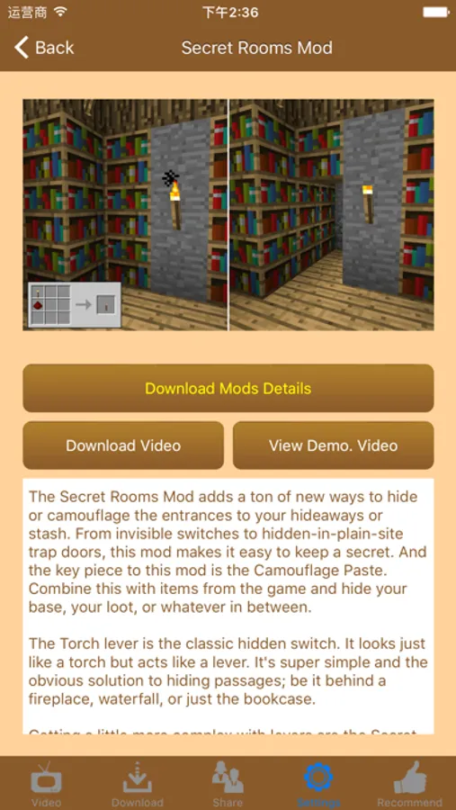 This app contains latest Furniture Mods of 【Minecraft】, and all the mods can be downloaded from our server without further charge or periodic subscription. With the Mods screenshots, demonstration videos and descriptions, you will be able to find out whether the time and money needed is worth to backup the game, download and install the Mods.