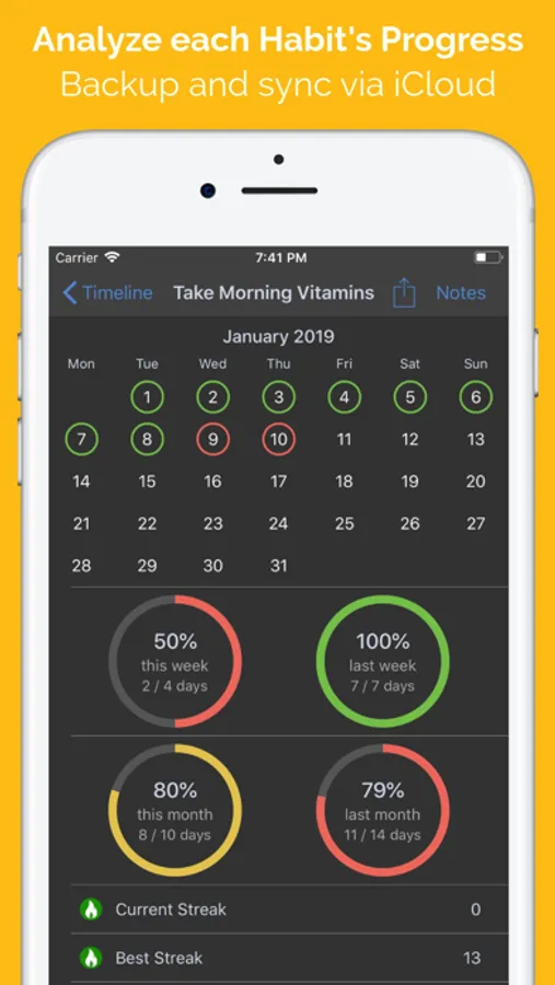 • Automatic native iCloud backup and sync of habit data across all iOS devices (iPhone/iPad/iPhone) and never lose your habit data & its history