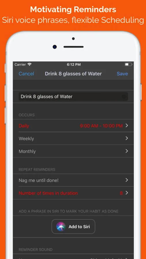 • Motivating Assistive Repeating reminders – set up the interval between your start and end reminder time for each habit and watch the reminders nudge you to complete like a personal assistant and keeping you on track