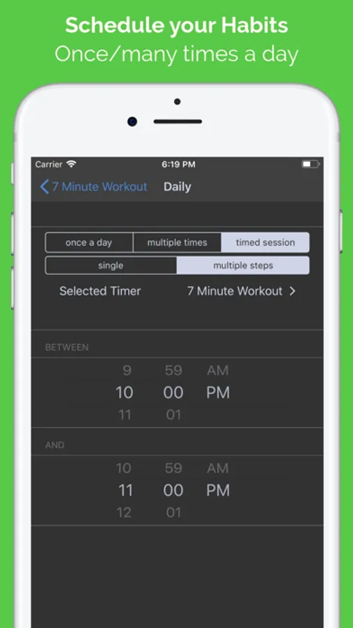 • Late-night habits – Plan habits to start in the current day and end after midnight for the late-night folks. It stays red and on top motivating you and only auto skips after the end time on the next day