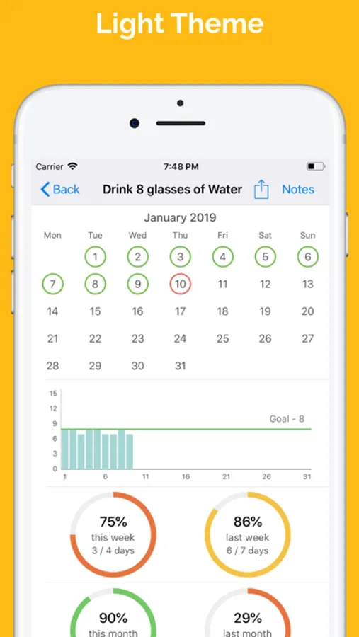 o Trend chart for multiple times a day & goal value habits - Shows a visual progress chart against goal value as to how the habit is trending