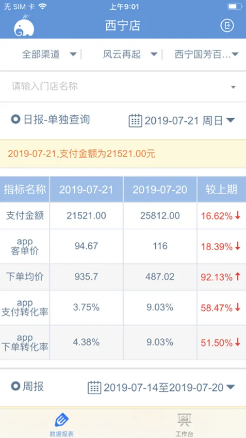 2、数据报表:提供商家每日、周、月的详细数据报表,助力店铺经营