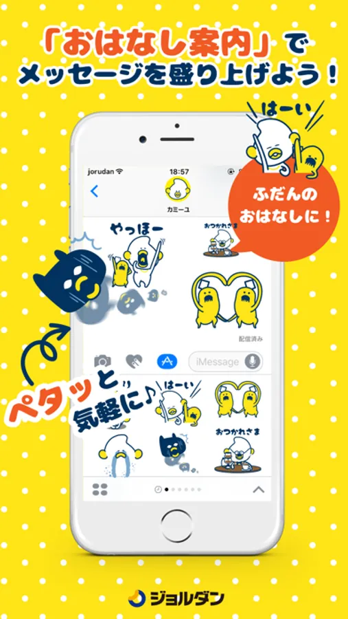 「乗換案内」のジョルダンが贈る、ふだんのおはなしに使いやすいステッカーです。白い「カミーユ」と黄色い「おっさん電車」がみなさんのメッセージを盛り上げます。