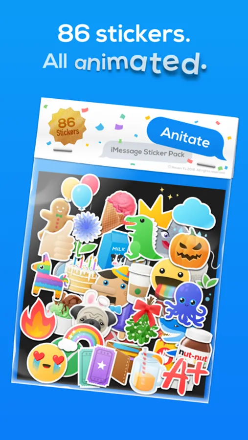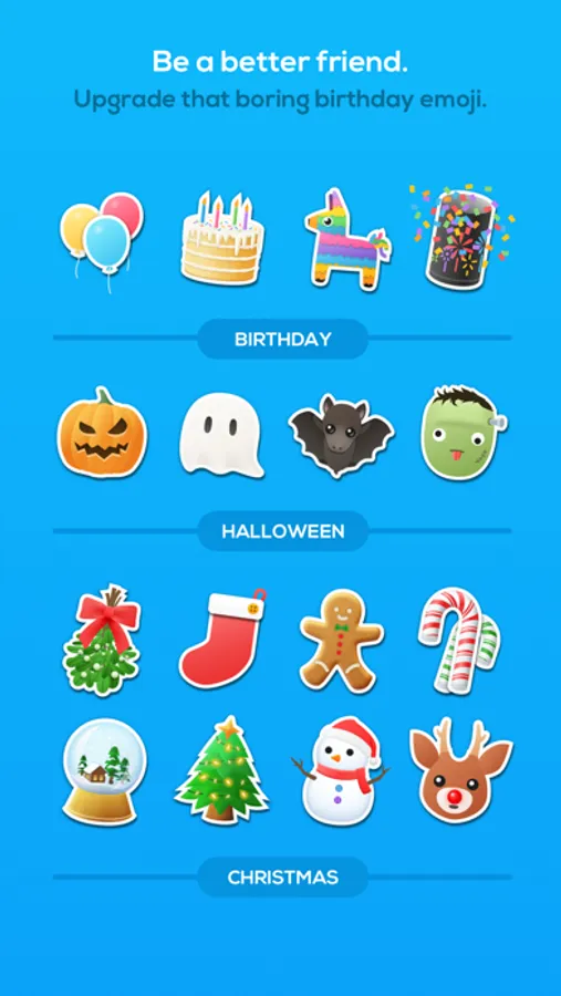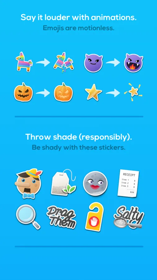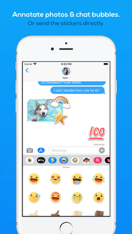 Expressive stickers for every occasion. Drag and drop them on top of photos and chat bubbles, or send them directly.