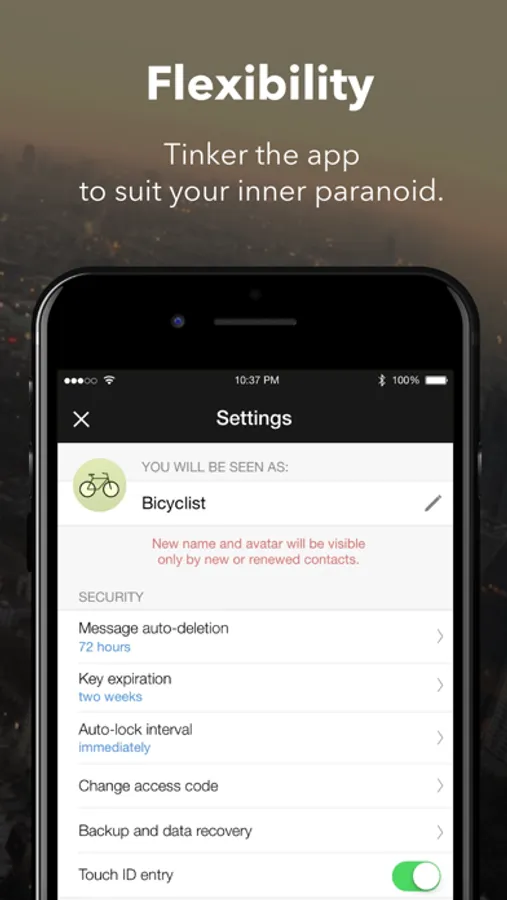 There is also a number of additional security measures like pin-code app lock, messages auto-expiration, deletion of a message on both phones and more. Commercial corporate version of the app's is also available - server software can be deployed on premise.