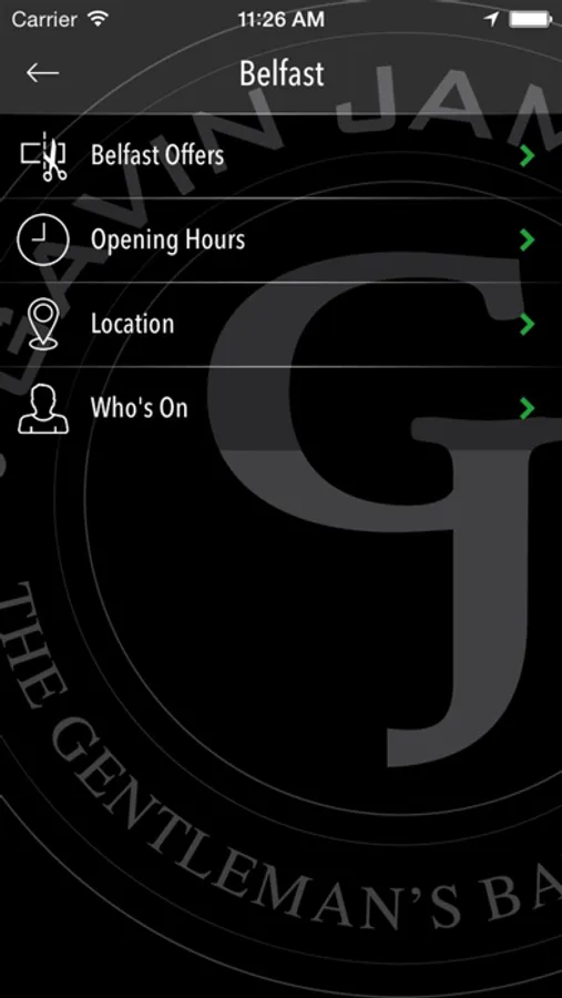 Welcome to the Gavin James Barbers mobile app. Use our app to collect loyalty points, redeem special offers and book appointments with our talented staff.