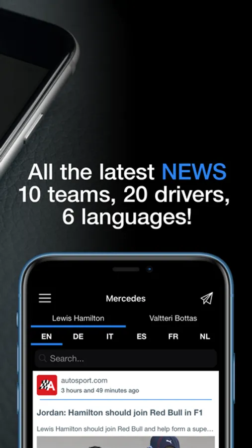 The GP™ NewsRadar App brings you all the global news about Formula One™ Racing. Our advanced search engines are constantly scanning the worldwide web, providing you with all the latest news about Formula One™ in general, but also specific news about all the teams and all the drivers.