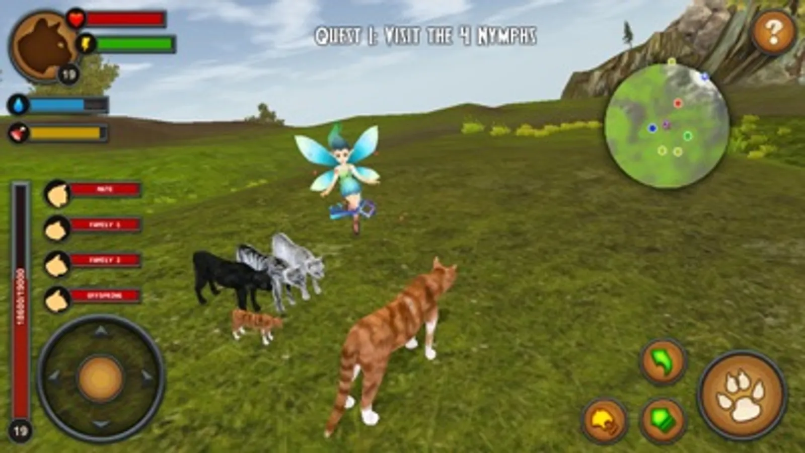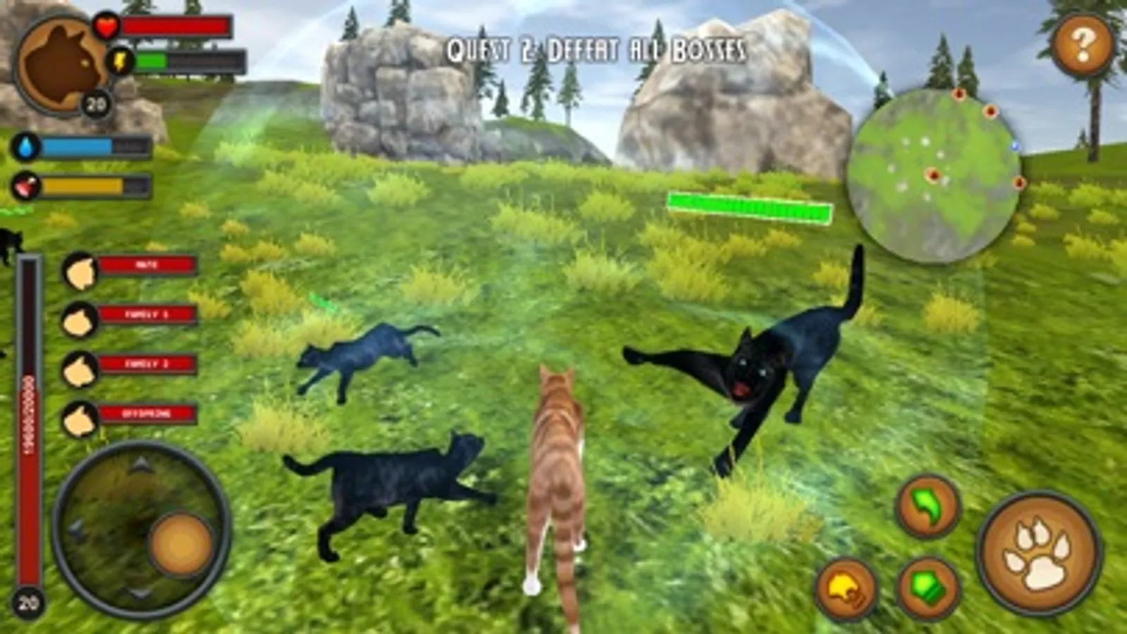 The story begins with your kitten. You must help her find her way in the world. Find some family members, mark some territory, and avoid the enemies. Your Cat will build her skill by completing various quests. Along the way, you will develop your hunting skills. You will need to drink water and stay hydrated. Be sure to hunt and eat when your hunger level gets low.