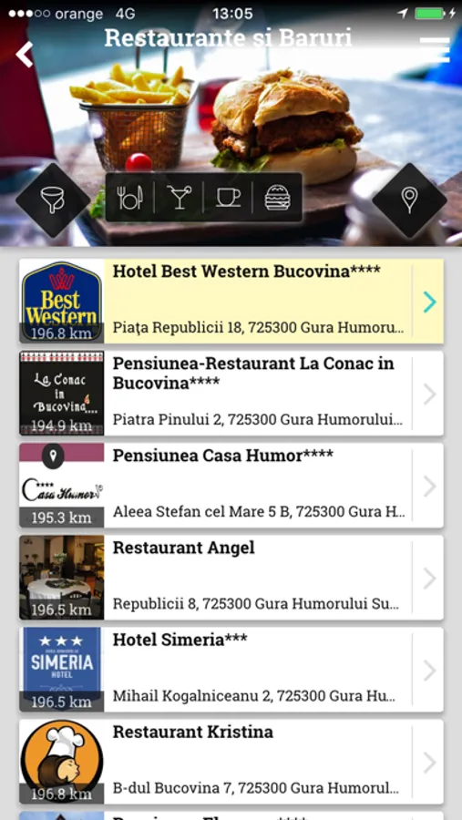 - Food & Drink: places in Gura Humorului that serve food and drinks;