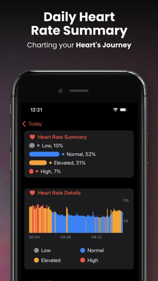 CardioBot is an iPhone app that reads heart rate data stored by the Apple Watch in HealthKit. The app separates readings in low, normal, elevated, and high heart rate through different colors and charts, allowing you to see averages at a glance.