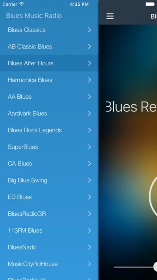 * 25+ Blues Radio Stations including many Classic ones, Rock-Blues, Country Blues, Electric Blues, & Harmonica Blues