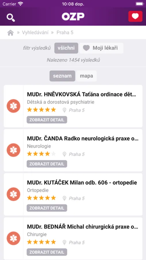 Aplikace zobrazuje hodnocení lékařů a dalších poskytovatelů zdravotních služeb tak, jak je ohodnotili jejich pacienti - pojištěnci Oborové zdravotní pojišťovny.