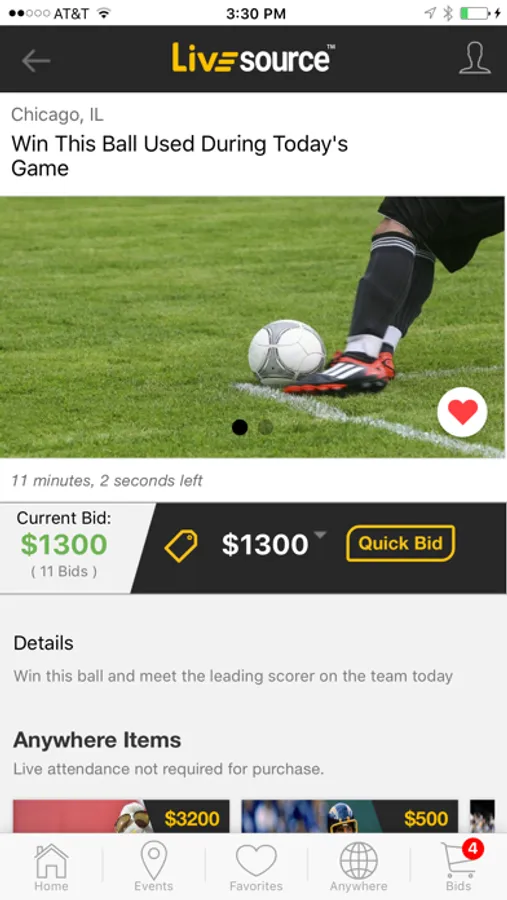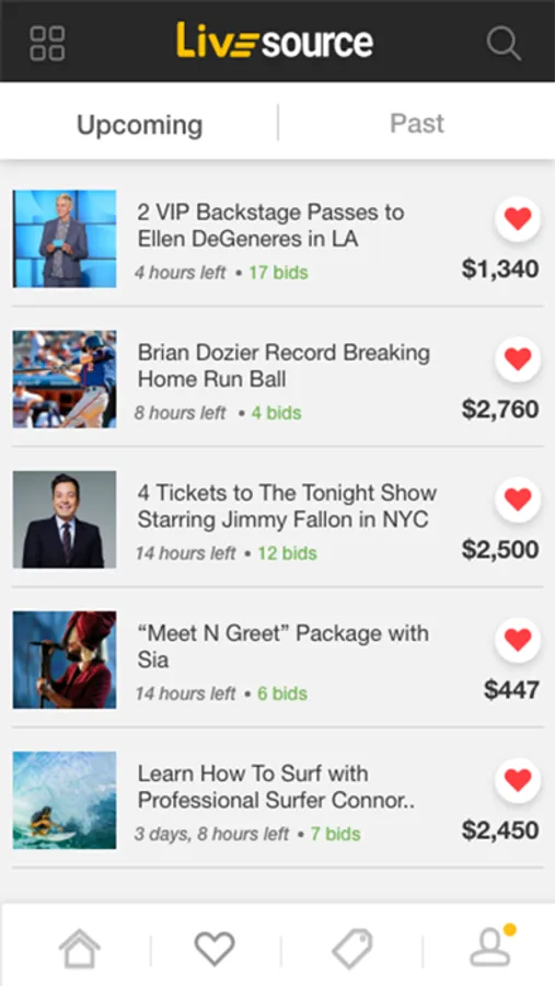 Live Source auctions are created during events so fans can participate instantly. Easy to create auctions means more items are available for fans to bid on. Fans are excited by new opportunities to own memorabilia or purchase unique experiences. Fans then bid from their seats. The app selects the winning bid as well as arranging payment and collection moments later.