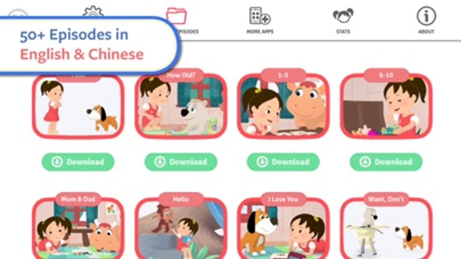 • 50+ episodes of Miaomiao and friends going on adventures and teaching Chinese words. All episodes are also in Mandarin Chinese teaching English words for a more immersive Chinese experience.
