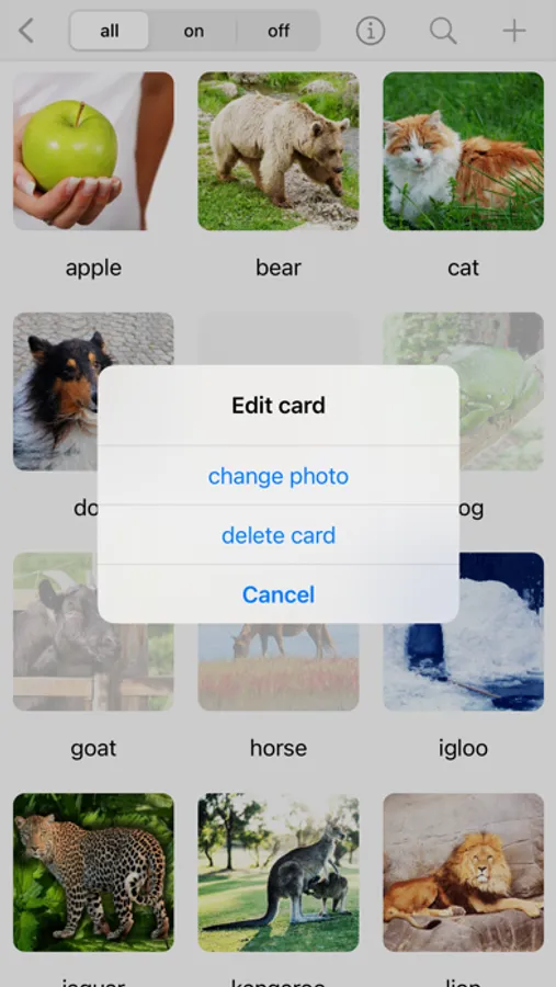 Customise card library of your very own custom cards, pictures and images. Add pictures of friends, favourite foods or construction vehicles. Customiseable to anything your child likes!