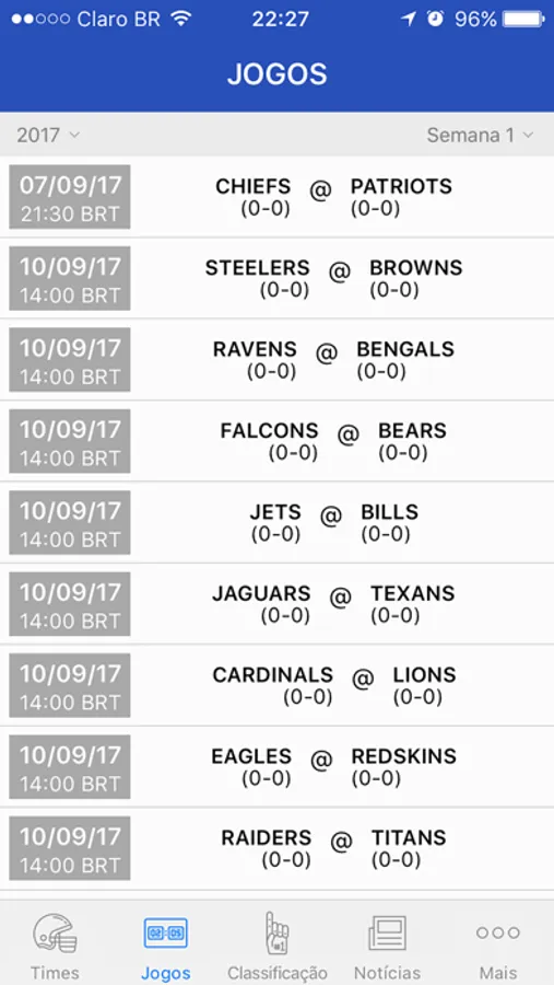 Todos os jogos desde a temporada 2010, estatísticas, classificação, notícias, Super Bowl, draft e muito mais!