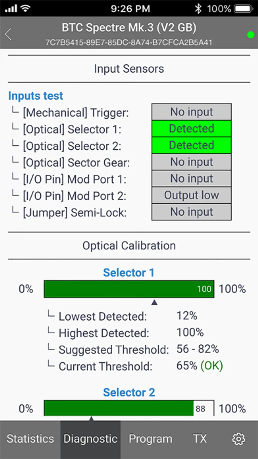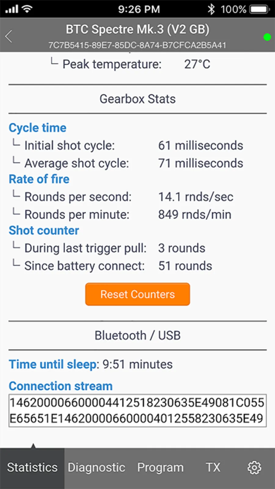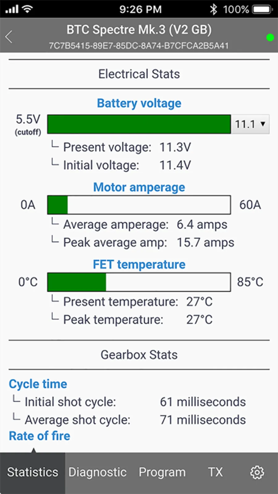 - Displays timing of shot cycles and RoF to assist with fine-tuning AEGs to desired performance.