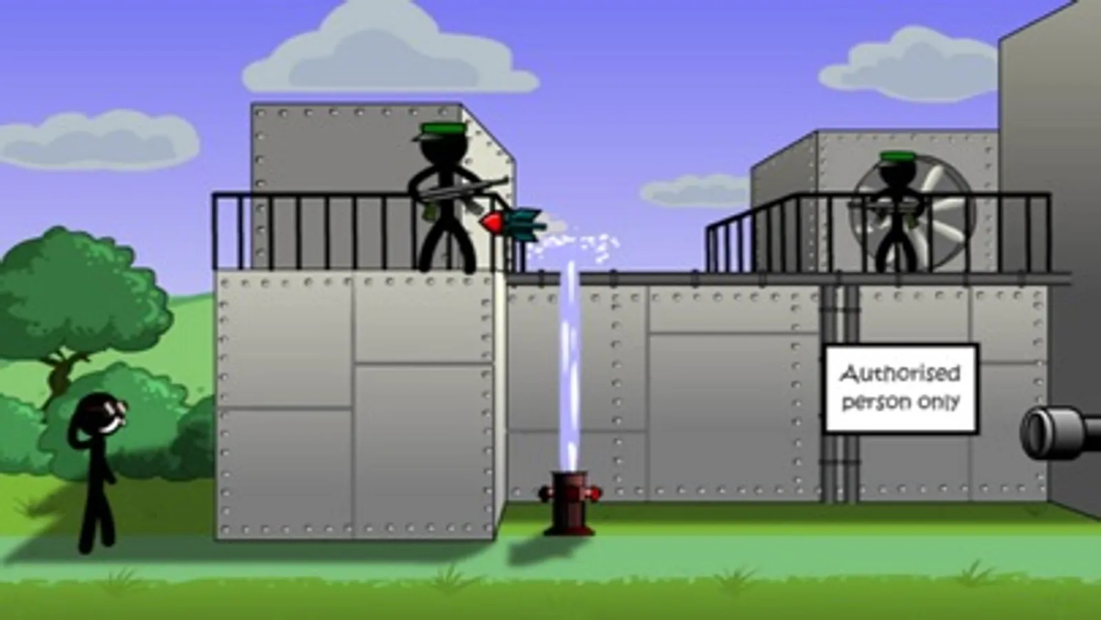 These bad stickmans are creating a super power weapon that can destroy the whole city.