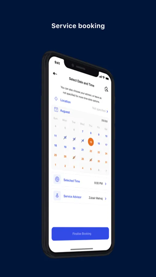 Easily book a service by selecting a suitable date, time, and preferred location.
