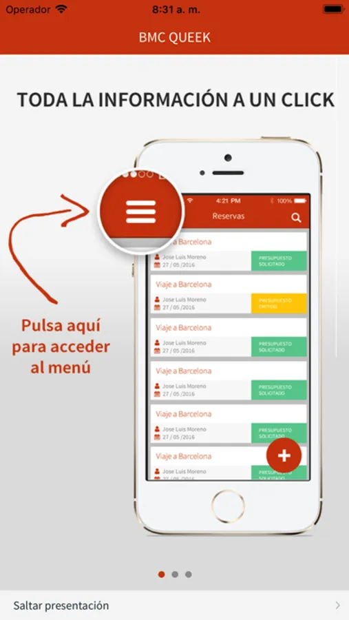 The Queek platform, both its WEB version as mobile APP, is a software tool that allows all the operations of request and book a trip acting as primary communication channel between agent ( BMC Travel ) and client , and as a single repository all the information exchanged during the process .