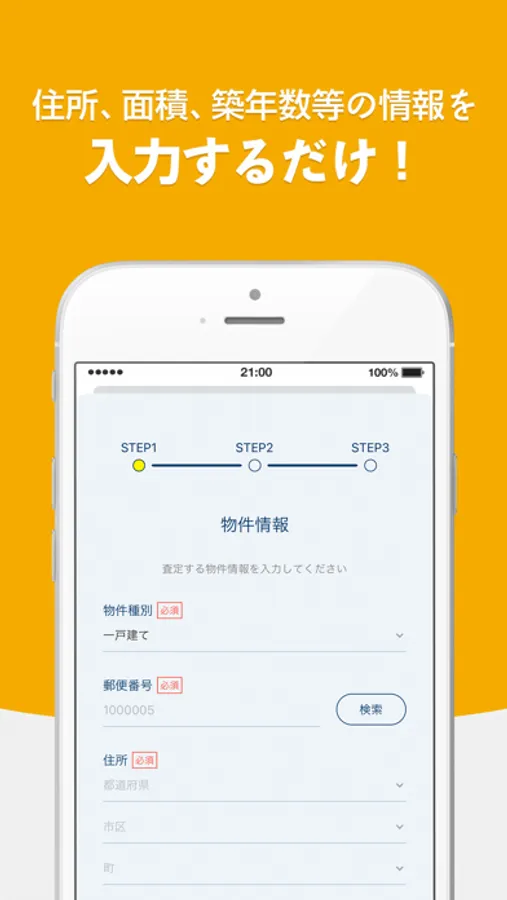 お持ちの不動産(土地、戸建て、マンション)情報を入力する事により、AIが10秒で簡易査定をしてくれるアプリです。