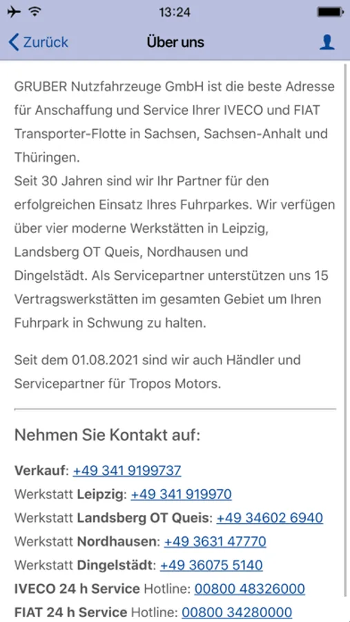 Herzlich Willkommen zur offiziellen App von Gruber Nutzfahrzeuge in Sachsen, Sachsen Anhalt und Thüringen! Hier erfahren Sie alles über unsere Leistungen und Kontaktmöglichkeiten, als Ihr Nutzfahrzeugpartner für IVECO und Fiat Professional in Mitteldeutschland. Für alle Branchen, für jeden Bedarf, immer das passende Nutzfahrzeug und den Service dazu aus einer Hand.