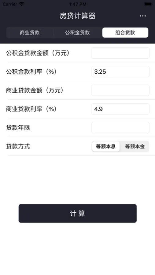 房贷计算器是一款房贷计算器工具,提供多种方式的计算,包括公积金贷、商业贷款、组合贷款计算等多种计算方式,能够帮助用户精准计算房贷月供,还款一目了然,是一款买房必备神器!