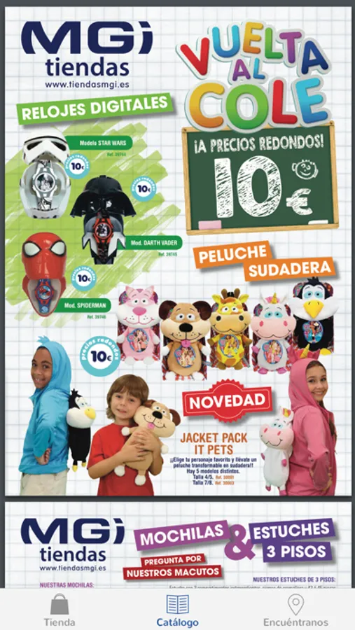 Tiendas MGI, la cadena de tiendas número 1 en artículos de 10 euros con más de 40 tiendas distribuidas por toda España, presentando además, una selección de artículos premiun de 15 y 20 euros.