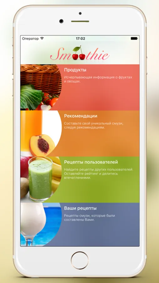 В приготовлении самого вкусного и полезного смузи Вам поможет наше приложение, в приложении Вы не найдете банальные рецепты от автора, но сможете найти интересные и опробованные рецепты от пользователей приложения*