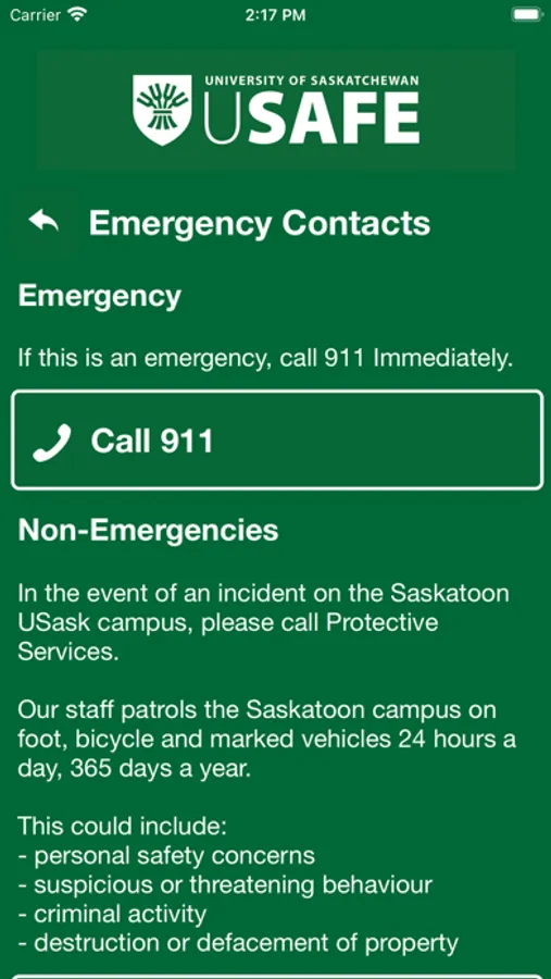 - Emergency Contacts: Contact the correct services for the University of Saskatchewan area in case of an emergency or a non-emergency concern