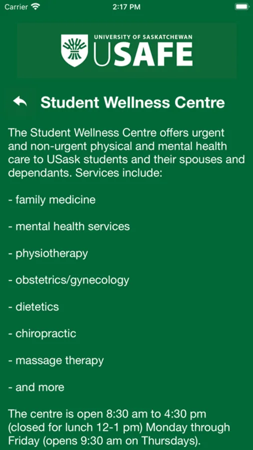 - Support Resources: Access support resources in one convenient app to enjoy a successful experience at the University of Saskatchewan.