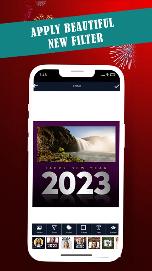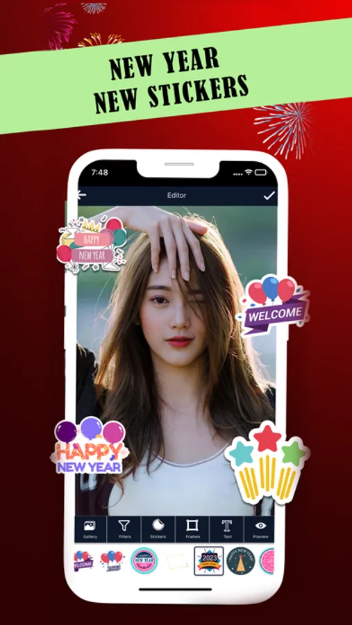 Happy New 2023! Here comes a precious present for you that will beautify all your photos! Download New Year Photo Frames 2023 for free and start the year with the best photo fun. It's time for New Year's resolutions and one of them should certainly be to edit all your photos and make them look fantastic. Get ready for this wonderful holiday and use this free photo editing software and photo montage maker to beautify your holiday pics and family photos.